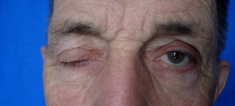 Recidivirajuća (ponovljena) teška jednostrana blefaroptoza riješena metodom frontalne suspenzije.