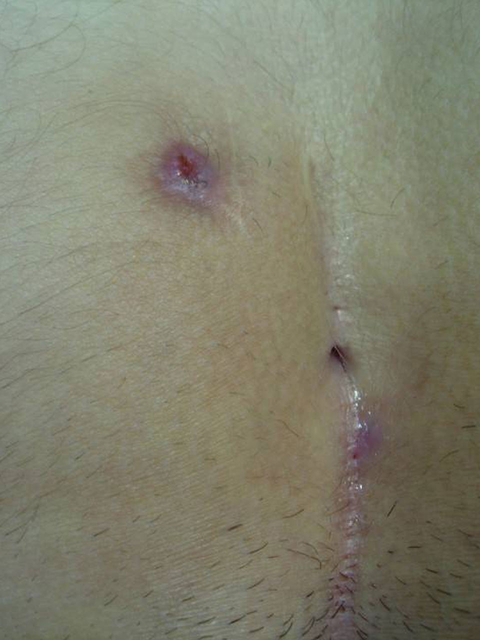 Komplikacija neadekvatno zbrinutog pilonidalnog sinusa direktnim šavom.
